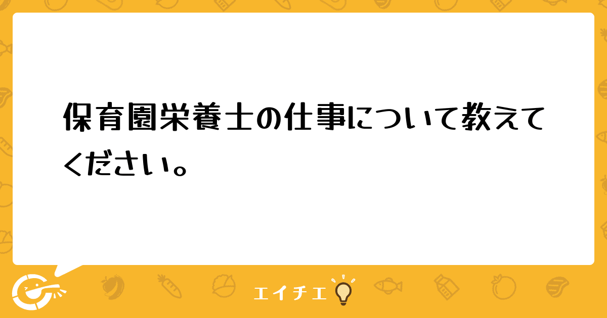 保育園栄養士の経験は1年、養護学校で2年ありますが、現場が主で献立は少し経験あります。子供向けの栄養指導は経験したことありません。