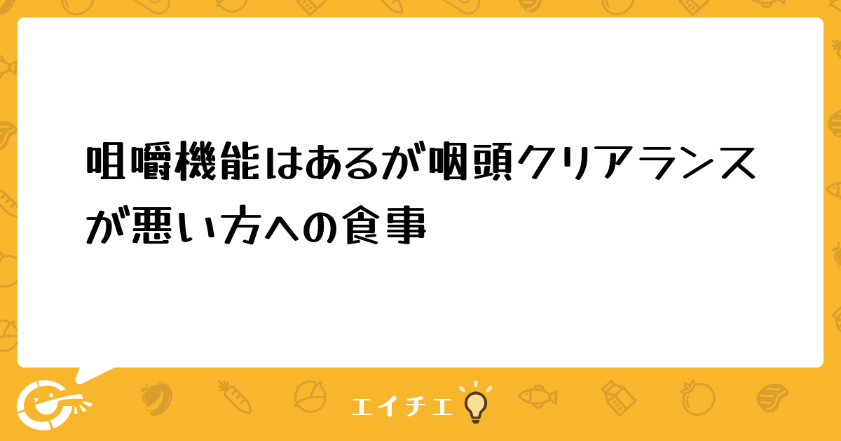 ご入居者様に自分の歯がほぼ全部そろっていて煎餅でも肉でも噛み切れるけれど咽頭クリアランスがそうとう悪く咽頭残留や痰が出る方がいます。ご家族様は「咀嚼できるのに形態落としたら噛むのをやめるから嫌」と拒否で、こちらが説明しても聞く耳をもりません。ゼリー食にしても噛む練習のようなものが出来る食品・・ないですかね・・。