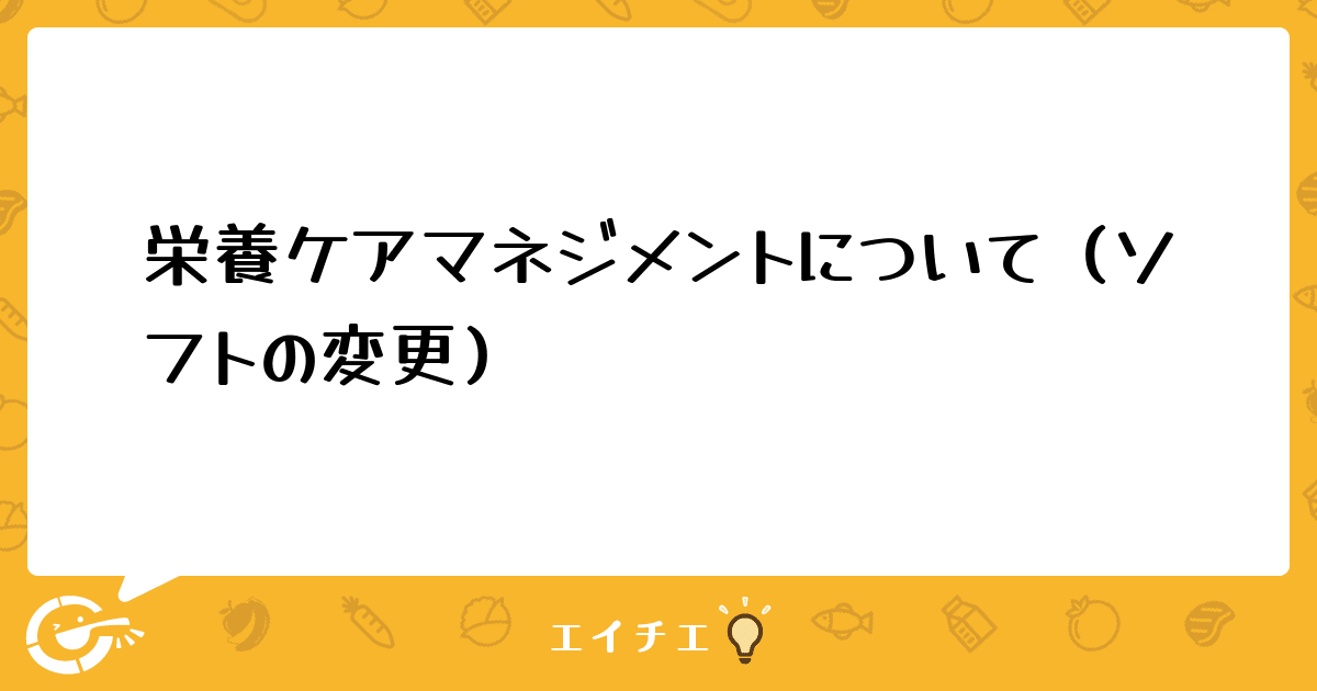今回、皆様に質問をさせていただきたいのは栄養ケアマネジメントのソフトの更新について聞きしたいです。