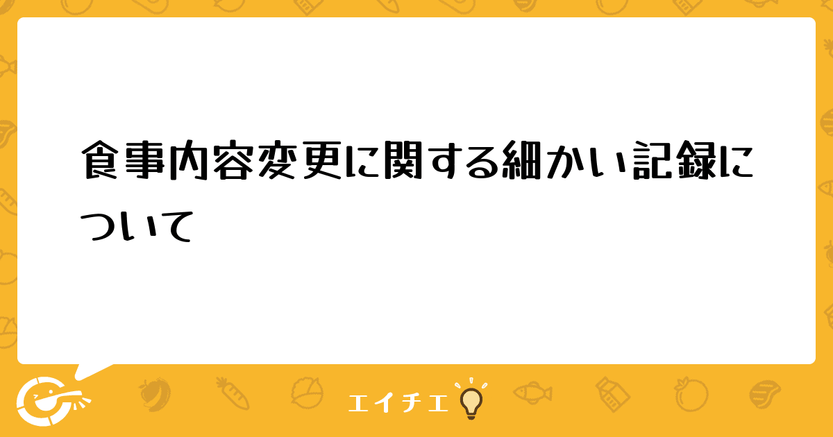 それは、食事内容の変更(ごはんの量の増減や食事形態の変更など)をするときに、看護師に確認や相談をしてから変更をしているのですが、それに関してちゃんと記録を残していないと栄養ケアマネジメントがしっかり行われていないと言われました。記録というのは、誰といつ話し合って、どのように変わったか、だと言われたのですが、そこまで記録を残さないといけないのでしょうか?また、これに関して何か書式はあるのでしょうか?