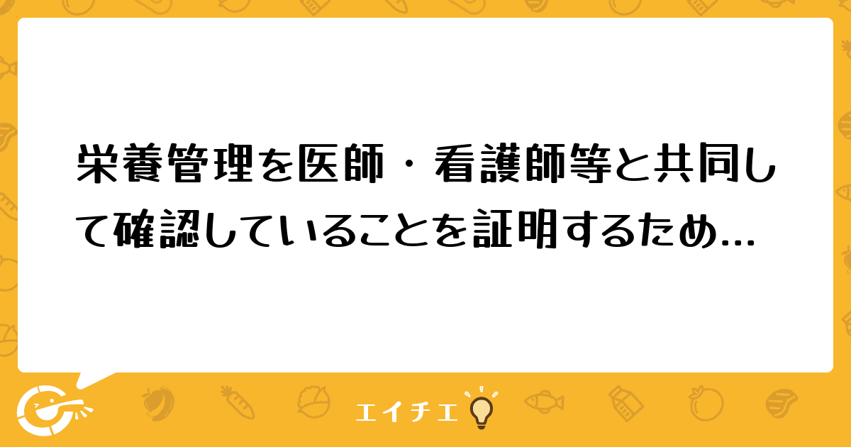 という形をとり、3職種共同で栄養管理をしていますという証明に