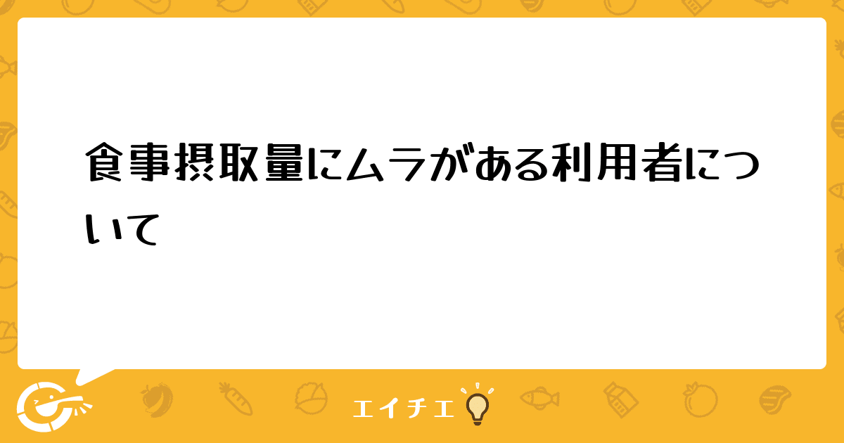 必要エネルギー約1200Kcalの利用者についてですが、食事にムラがあり100%食べる時もあれば60%、30%、で終わる時もあります。認知面が進んでおり、食事に集中するということが出来ません。食事中に傾眠がひどい時もあります。食事量が少ない時は、栄養補助食品(当苑では、CZ-Hiゼリーという物を作っています。)を提供したいと思っています。毎日、朝に300mlほどCZ-Hiゼリーをタッパーに入れて、朝食時に食事摂取量が少なかった場合は、食事の他に提供し、それでも食べなかったら10時に提供し、昼食時に食事摂取量が少なかった場合は、食事の他に提供し、それでも食べなかったら15時に提供するなど1日サイクルで提供しようと考えています。しかし、1日の食事摂取量100%の時はCZ-Hiゼリーを食べないで廃棄することになりもったいないです。