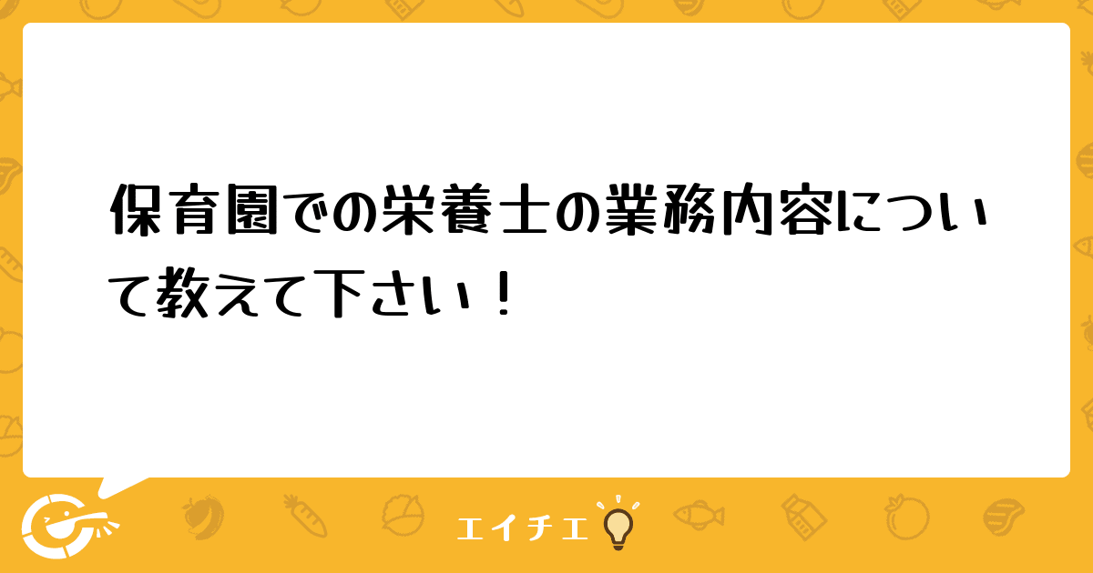 突然保育園で栄養士の仕事をすることになり何分、初めてで戸惑っています。