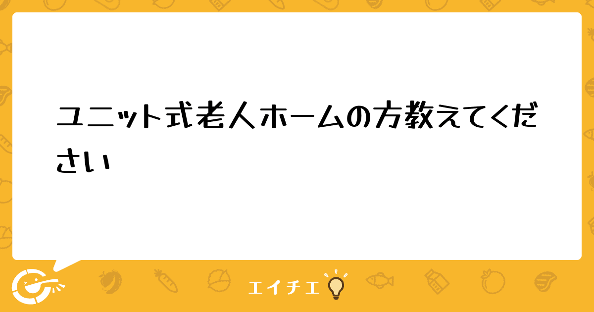 私は、ユニット型特別養護老人ホームで栄養士をしています。