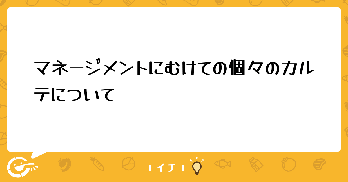 先日、保健所の立ち入りがあり、栄養マネージメントの作成に向けて、本格的でないまでも入所者個々のファイルを作成するよう、指導をうけました。