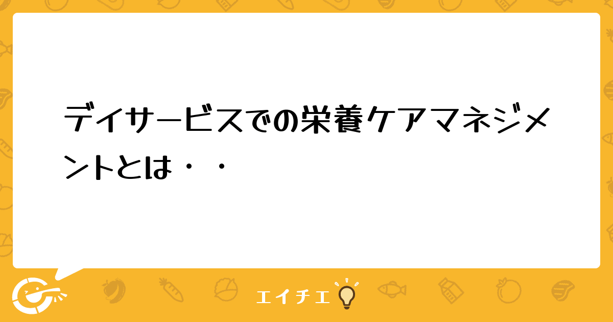そこそこで色々違いはあると思いますが、デイサービスのみの事業所での、栄養ケアマネジメントのイメージがいまいちつかめなくて・・