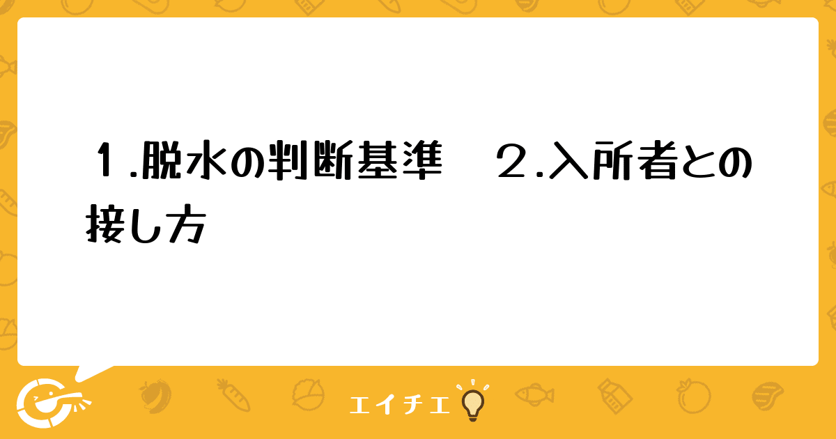 1.栄養ケアマネジメントの「脱水」の項目についてです。