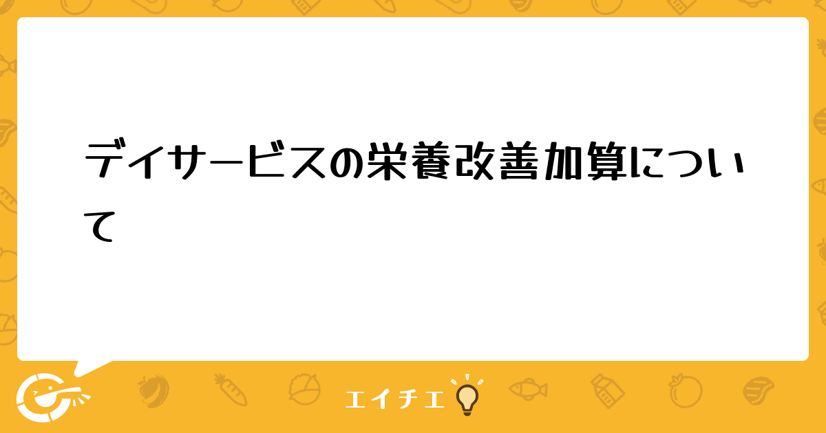 今後、デイサービスの栄養改善加算の取得を考えています。