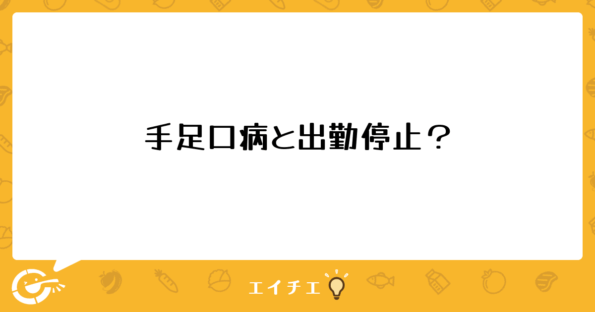 発症前に長男の残り物を食べたせいで先週末から私が口内炎や手足に数か所発赤があるのを発見し、職場で診てもらったところ手足口病と診断されました。発熱はなく食欲もふだんどおりです。感染しないようにマスク着用や対策をしていましたが。症状も手足の発赤は翌日にはなくなり、口内炎だけになりましたが、今日老健のスタッフから「他の人に感染するから出勤するのもどうかと思う。利用者様に近づかないで」と言われました。ネットで調べると手足口病の原因菌は排菌するまで1か月かかるとあるので、そこまでして休まないといけないのだろうかと思いました 症状がなくなっても保育園では流行しています。その辺も考えて出勤しないといけないものでしょうか…。悲しくなりました。