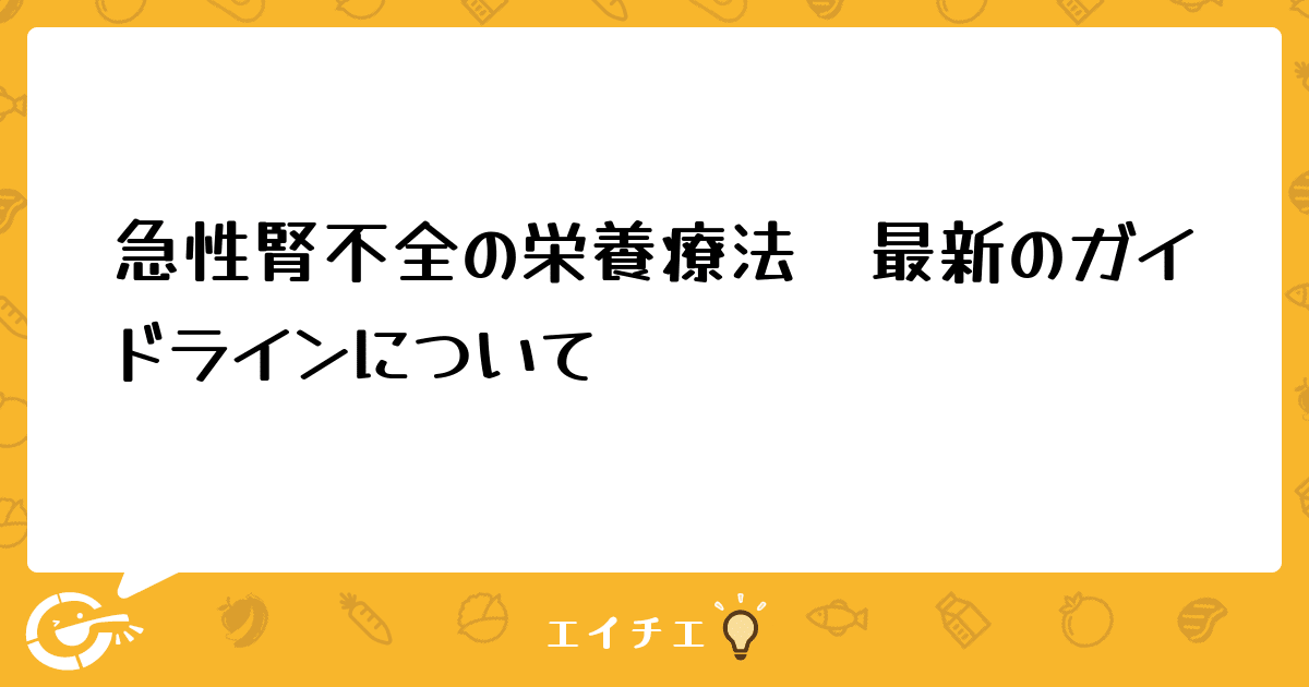 最新の急性腎不全の食事療法について