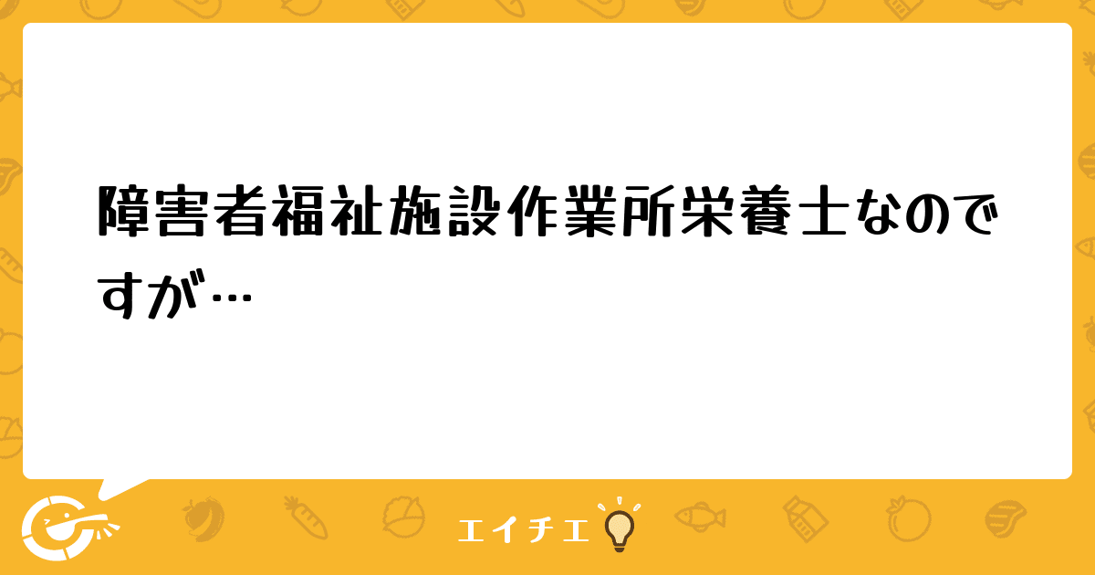 今年の4月から知的障害者福祉作業所でパートの栄養士をしています。
