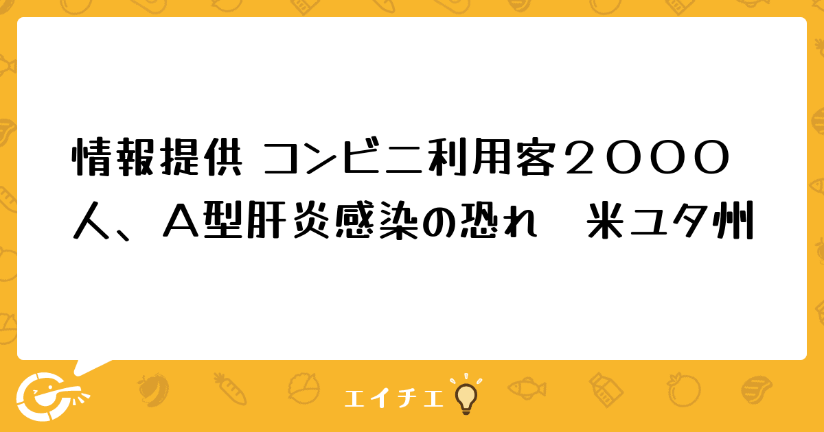 (CNN) 米西部ユタ州ソルトレークシティー近郊でコンビニエンスストア「セブン・イレブン」の店舗を利用した客2000人前後にA型肝炎ウイルス感染の恐れがあることが分かり、地元保健当局が警告を発している。