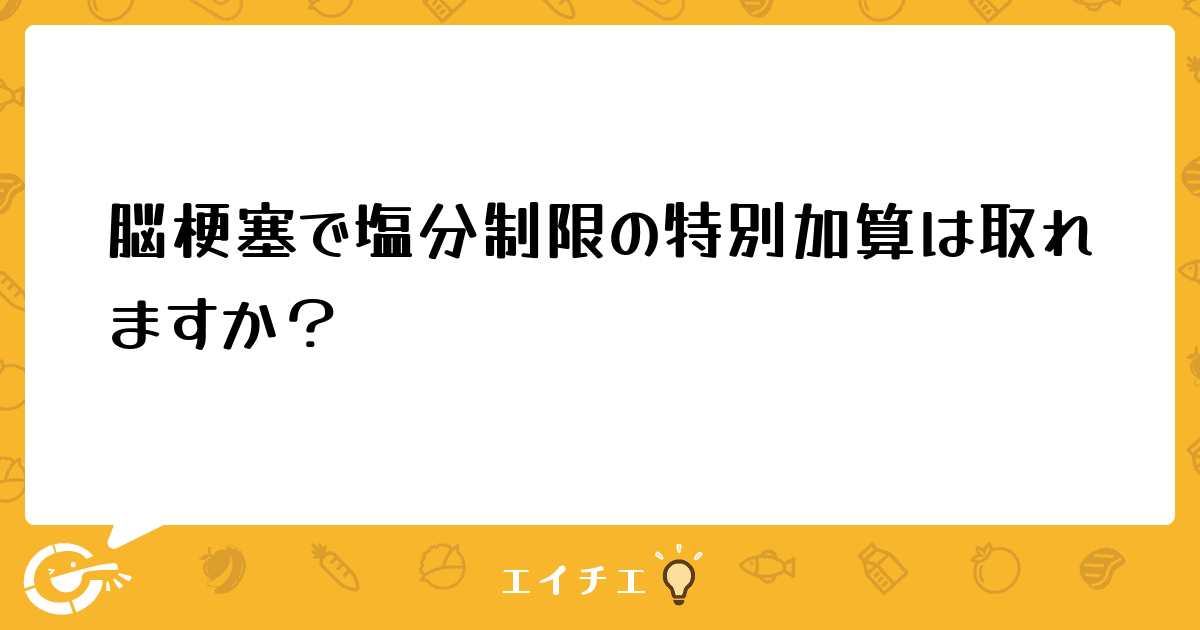 病院から塩分制限6g以下でと言われた方が入所してこられたのですが、既往歴を見ても腎臓病や心不全などの疾患はなく、脳梗塞再発防止のため塩分制限必要とサマリーに書かれていました。