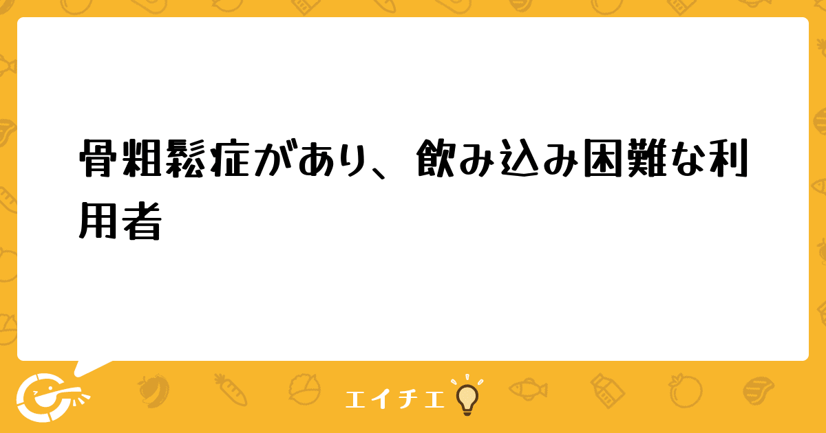 現在1200kcal 主食 全粥・副食 ミキサー食トロミ・汁物トロミを提供している骨粗鬆症で最近上腕骨骨折と診断された利用者がいます。食事摂取状況は口腔内の溜め込み・ムセがあります。体重低下もある方です。カルシウムを強化したいのですが。それで、食事の負担なくカルシウムが補充できるパウダーや強化食品を探していますが、なにか知っている方いますか?