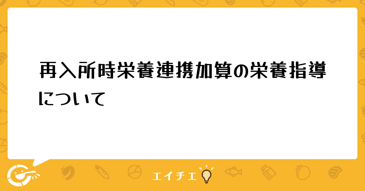 今年度の介護報酬改定で新設された再入所時栄養連携加算の算定要件に、「栄養指導に同席していること」があります。
