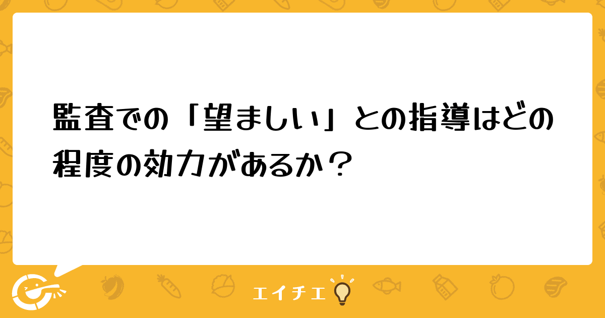 実際皆様の施設で「望ましい」という指導があった場合、次回の監査や指導までにどの程度行うか教えて頂けますか?