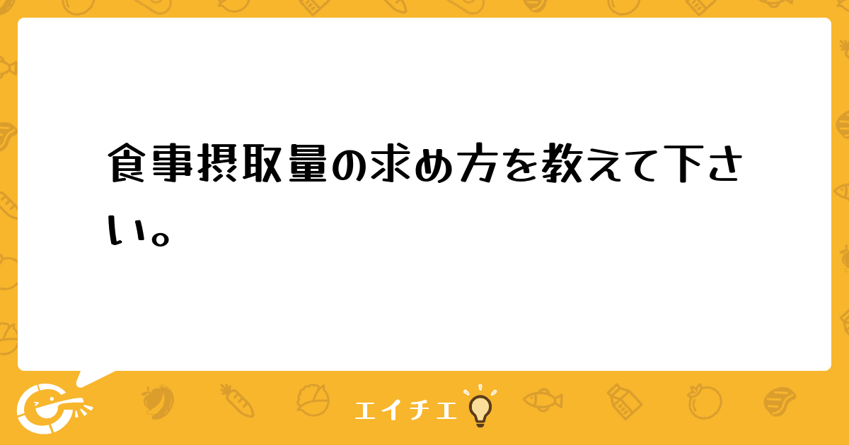 食事摂取量の出し方はどのようにして出したらいいのでしょうか?摂取量の出し方がわからないでいます。どなたか教えて下さい。