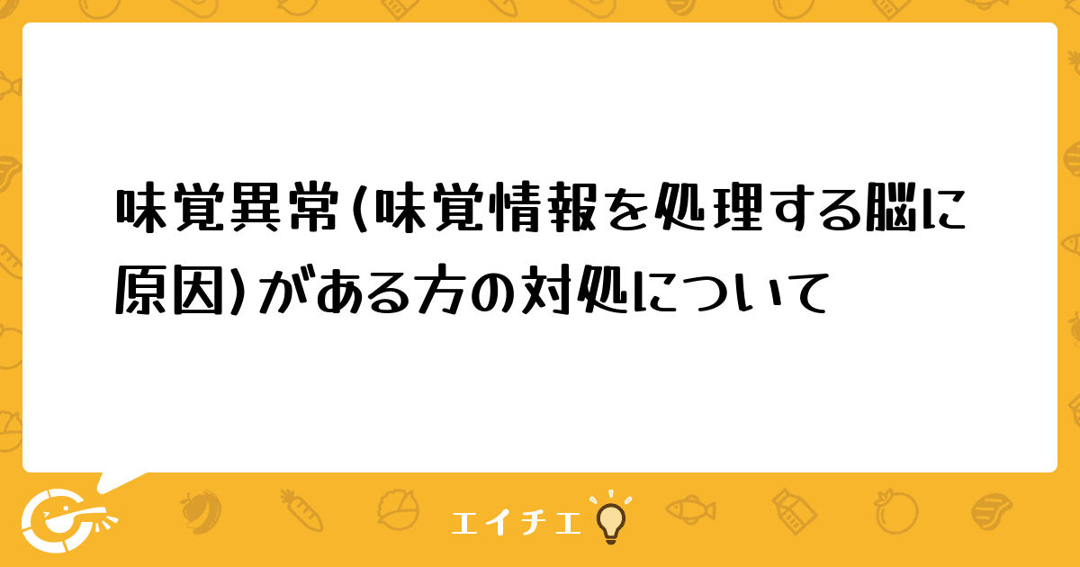 味覚異常の高齢者の方について、質問です。脳梗塞やパーキンソン病、うつ病など、味覚情報を処理する脳に異常かあり、食事量が低下、体重、ADLの、低下をきたしている利用者様がおられます。「何を食べても美味しくない」そうです。