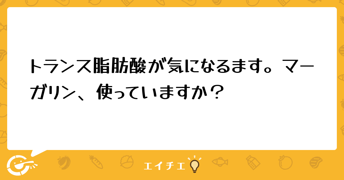 トランス脂肪酸が気になるのですが、マーガリンを使っていますか?以前の職場では使っていませんでしたが、現在の職場ではマーガリン入りのパンも、使いますし、炒め物などにも使っています。皆さんはどうされています?教えてください!