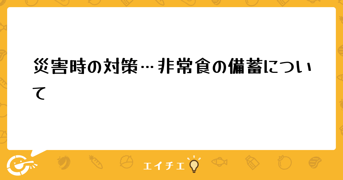 災害時の対策で、非常食の備蓄ですが、3日間の食事が提供出来るようにとなっていますが、皆さんの病院、施設ではどうされていますか?