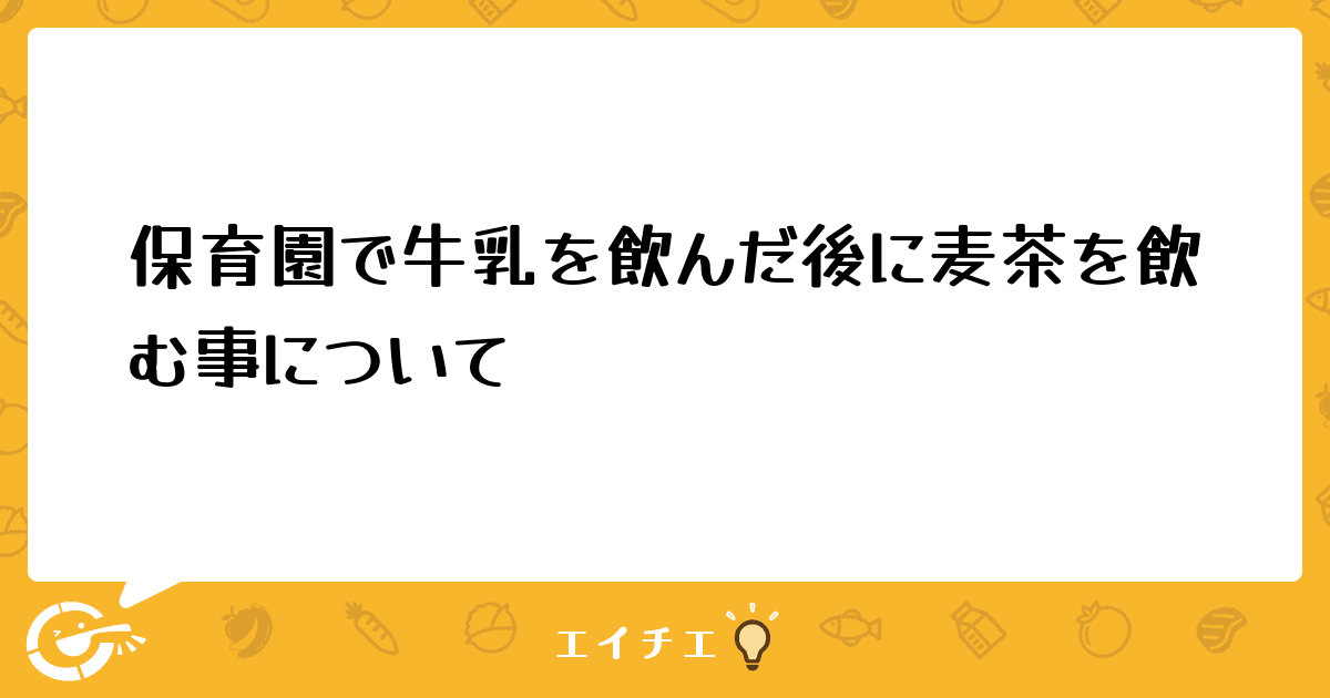 今日職員会で主任保育士の先生から園児の虫歯予防のために朝のおやつの牛乳を飲んだ後に麦茶を飲ませるのはどうだろうと相談されました。