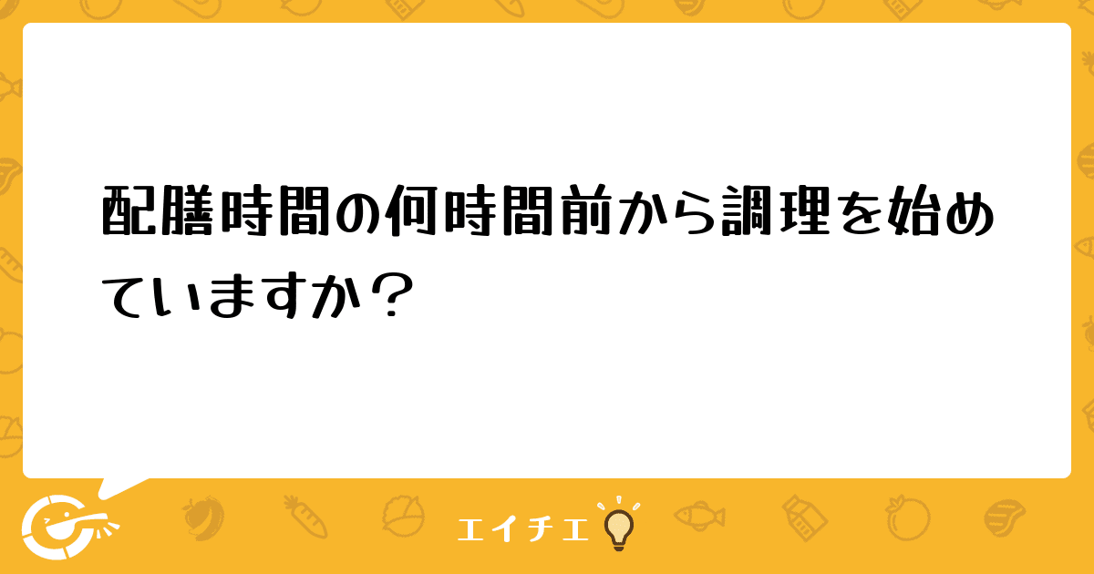 以前の医院では配膳時間の2時間前から調理を始めていました。現在の職場では4時間前か和え物を茹でたり、3時間前に煮物ができあがっったりします。皆さんの職場ではどのように調理作業していますか?教えてください。
