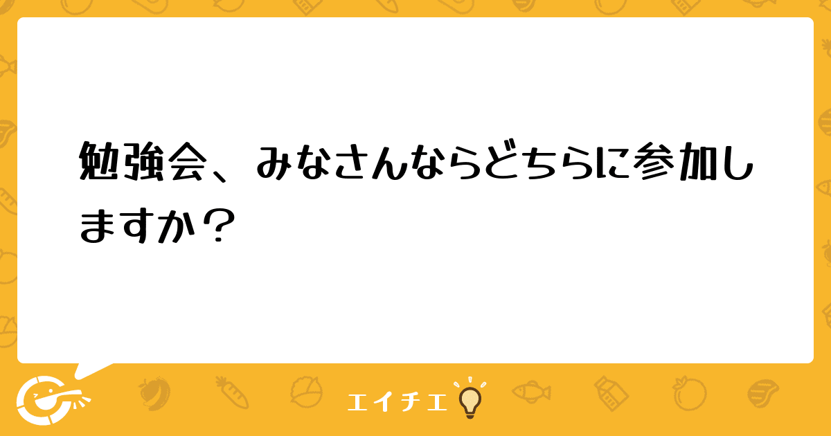 通常の開催場所に移動する勉強会しか参加したことがないのですが、みなさんだったらどっちを選ばれますか?ちなみに内容は同じようでした。
