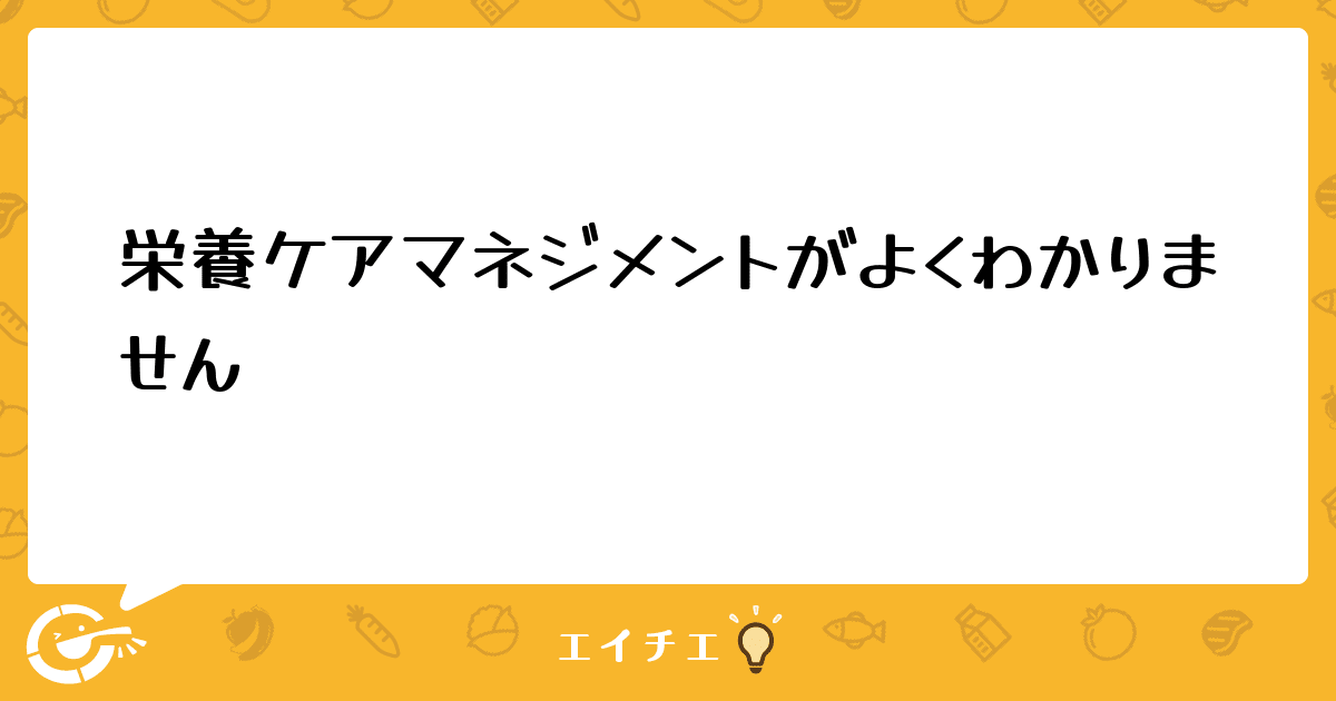 初歩的な質問で恥ずかしいのですが、栄養ケアマネジメントに関して分からないことがでてきたので回答をよろしくお願い致します。