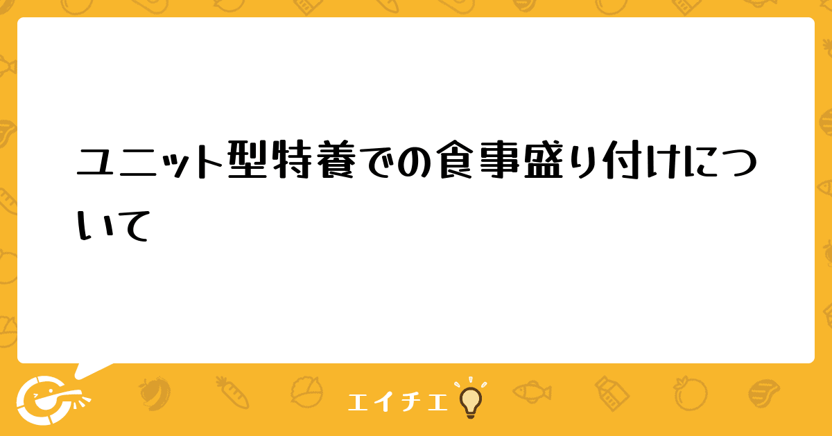 私の勤めている特養はユニット型であり、食事の盛り付けは、介護職員がユニットで行っております。エプロンと手袋着用のお願いしていますが、なかなか定着しません。