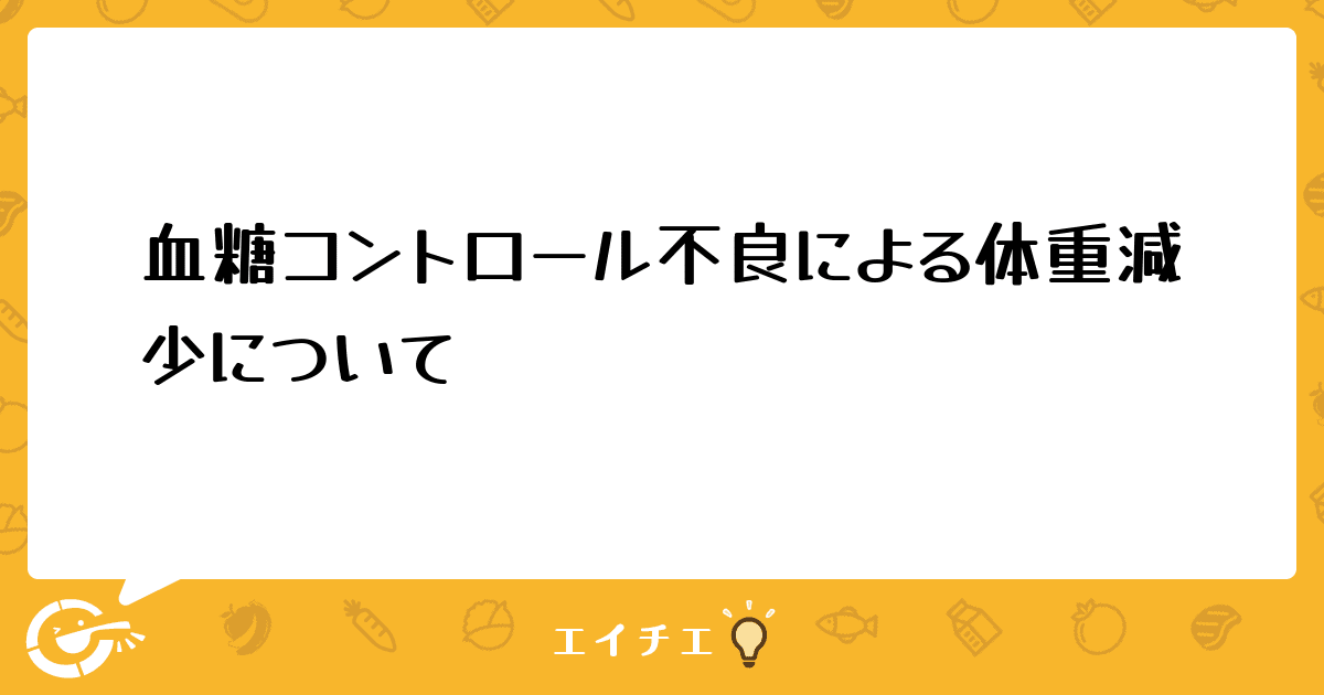 血糖コントロール不良による体重減少かな…と思っています。どの参考書を見ても、糖尿病の体重減少の可能性についての言及はあっても、その対応は見つけにくいです。