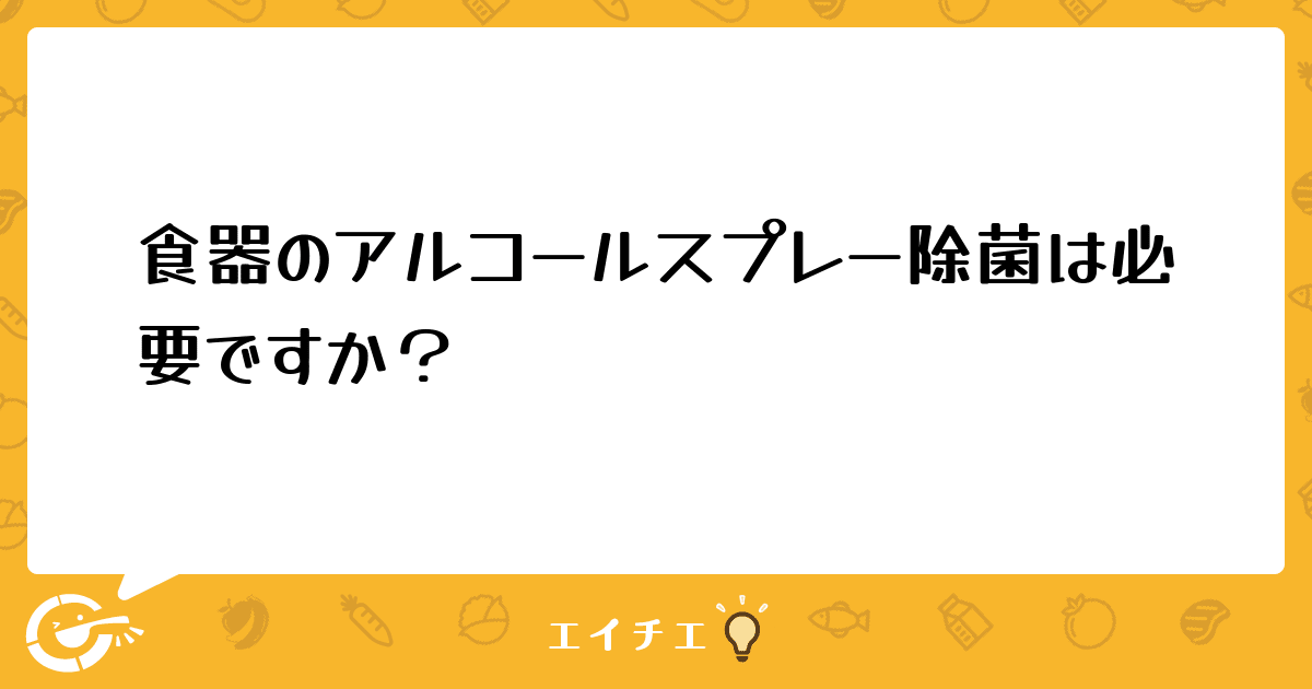 こんにちは。大量調理の給食を提供しています。盛り付けをする前の食器にアルコール消毒は必要でしょうか?現在小鉢にはおこなっていますが、ご飯茶碗や汁椀、メインの皿は並べることができないためおこなっていません。統一したいので小鉢もやめても問題ないでしょうか?洗浄後は乾燥させ、扉つきの食器棚に移動させ保管しています。皆さんのご意見お聞きしたいのでよろしくお願いいたします。