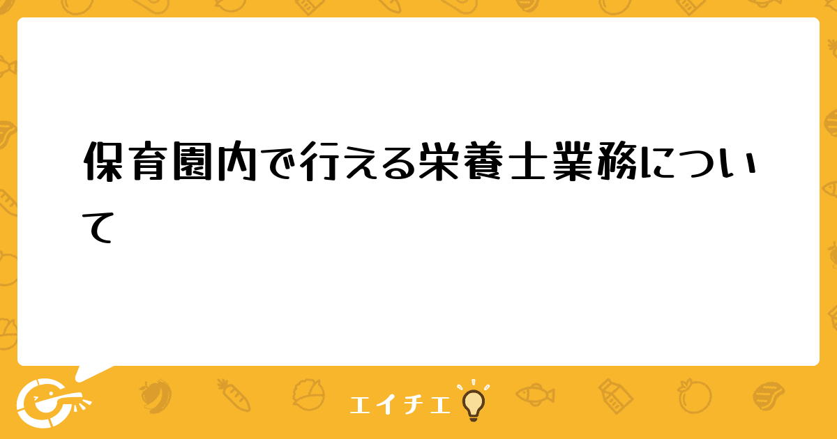 今回はタイトルの通り、園内で行える栄養士業務を考えています。