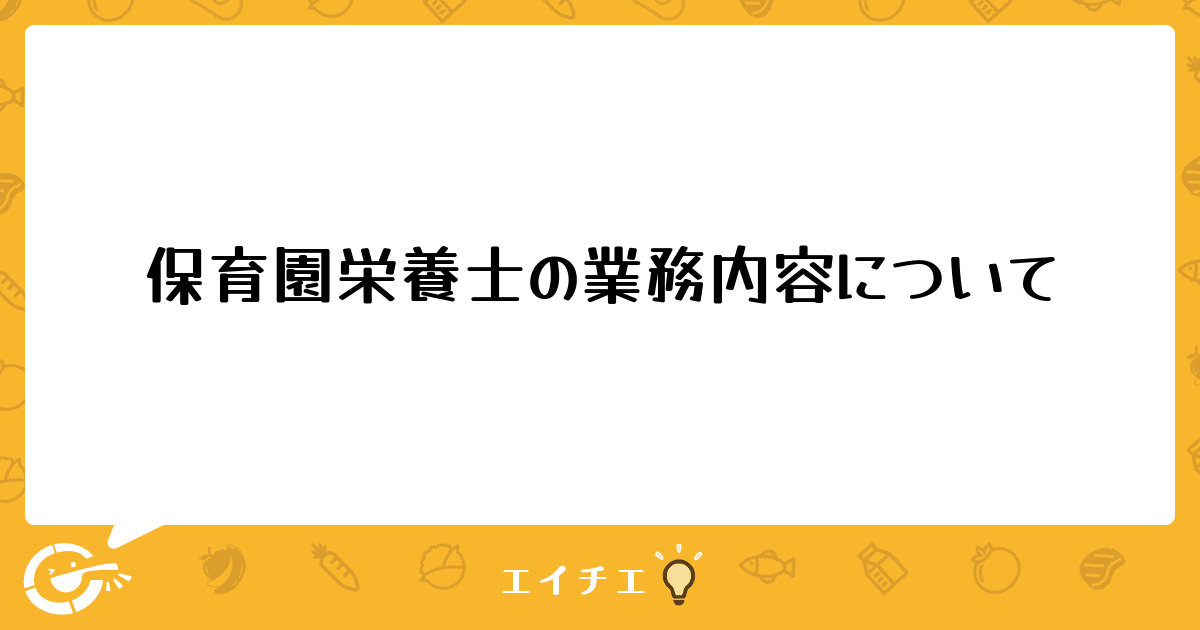 私は前職が病院での委託給食である上、今の認可外の保育園には栄養士がおらず引き継ぎもなく、正直なところ仕事内容がよくわかっていません。