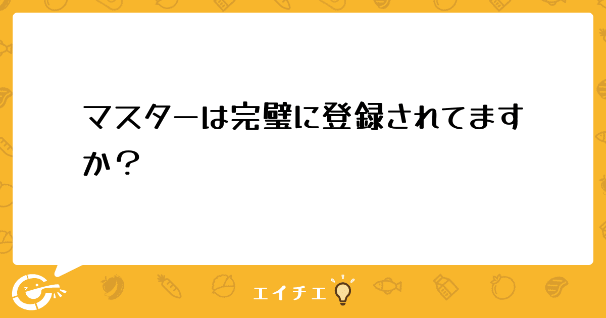 皆さんのところはまずないとは思うのですが、料理マスター、食品マスター共にしっかり整い、機能していらっしゃいますか?