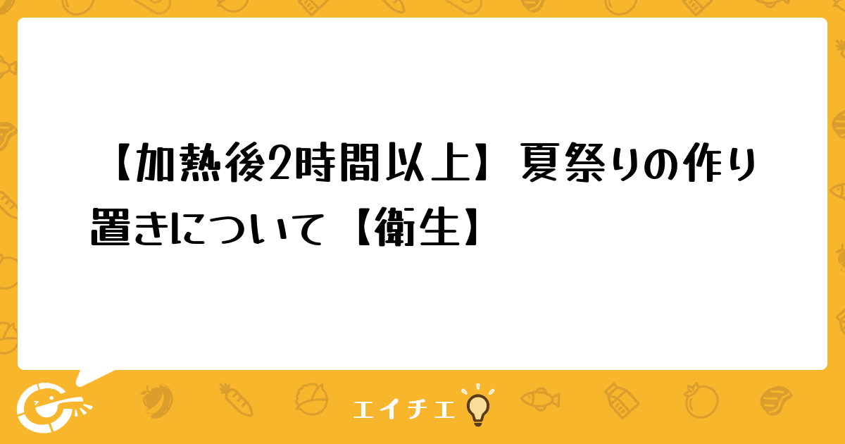 当園では焼きそば、フランクフルト(冷凍)、から揚げ(冷凍)を作る予定なのですが、作る量とパック詰めの事を考えると喫食前2時間以内の加熱は不可能です。