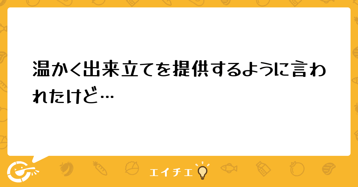 また、温かく提供できる方法があれば教えて頂きたいです。