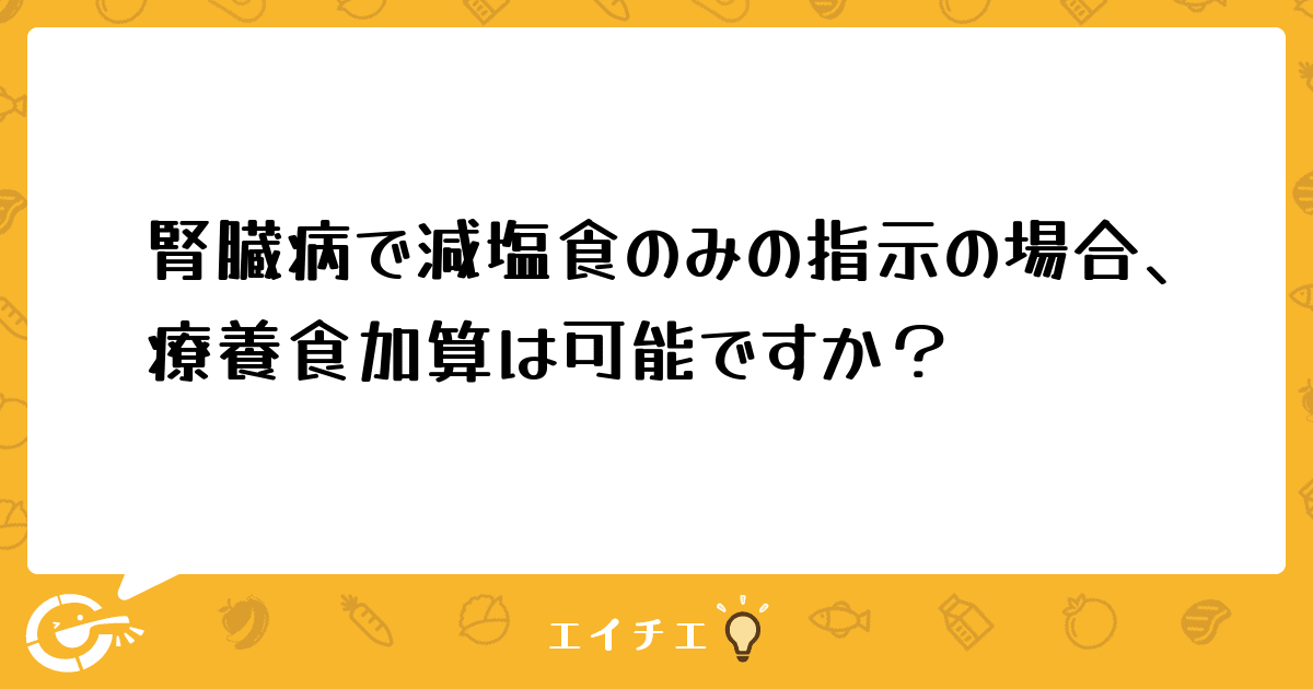 新規入居の方で腎機能低下があり、医師から減塩食の指示がありました。
