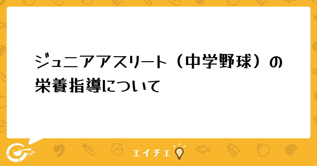 中学野球・高校野球の食トレに関わっている方に質問です。