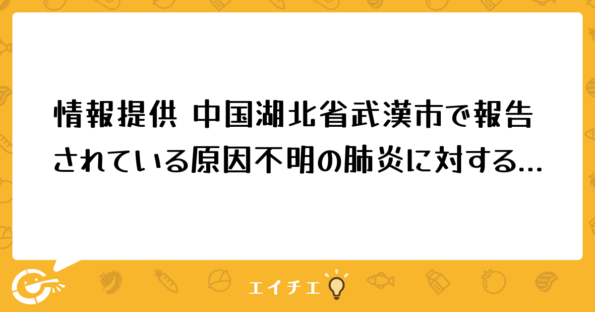 中華人民共和国湖北省武漢市における新型コロナウイルス関連肺炎について(令和2年1月29日版)