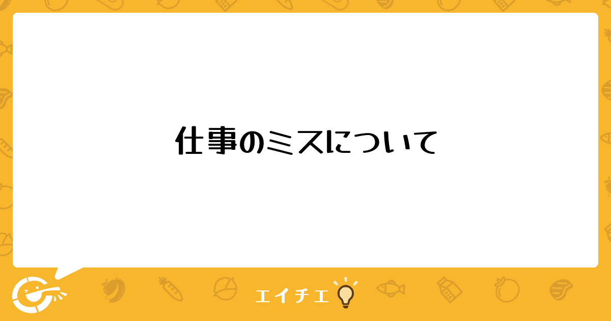 個人的な悩みですが、最近ミスを繰り返しています。ミスは絶対だめですが、ミスをここのところ繰り返しています。ミスが続くのはこの仕事不向きなのかと考えてしまいます。