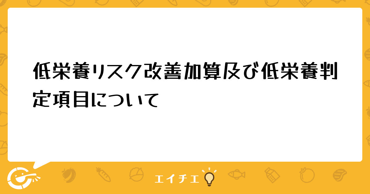 低栄養リスク改善加算及び低栄養判定項目について質問させていただきます。栄養スクリーニングにおいて、例えば、他の項目は低リスクだがAlb値が低く、高リスクに該当し、低栄養リスク改善加算の対象になった方がいて、算定していくとします。しかし、様々な要因が重なり、当施設では6ヶ月毎の採血(Alb値測定)になっています。そうなると3ヶ月毎に行うべき栄養スクリーニングの際、高リスクから外れてしまうことになってしまいます。この場合、低栄養リスク改善加算は、初めから算定しない方が良いのでしょうか?どうしても算定したいのなら、3ヶ月毎に採血した方が良いのでしょうか?また、当施設では、6ヶ月毎の採血の他に、体重測定も行えない方もいるという問題もあります。ちなみに、厚生局等に問い合わせた所、血液検査や体重は必須項目ではないとの事だったので、Alb値や体重にかわる栄養状態を把握する方法にしていくか、何とか採血は3ヶ月毎に行えるようにし、体重だけ他にかわる方法にしていこうかと考えています。