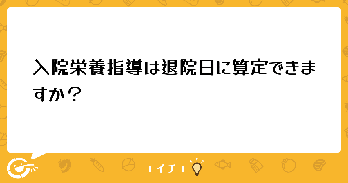 質問ですが、「入院栄養指導は退院日に算定できるのでしょうか?」
