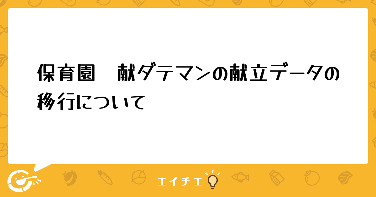 友人から相談されたものなので恐縮ですが、保育園の給食管理に献ダテマンを使っているようなのですが、他のサービスに切り替えたいようです。ただし、別のサービスに移行しても、献立データを1から作るのが手間ということで、既存の献立データなどのバックアップデータがどこかにあれば、それを流し込むなどできないか、ということです。
