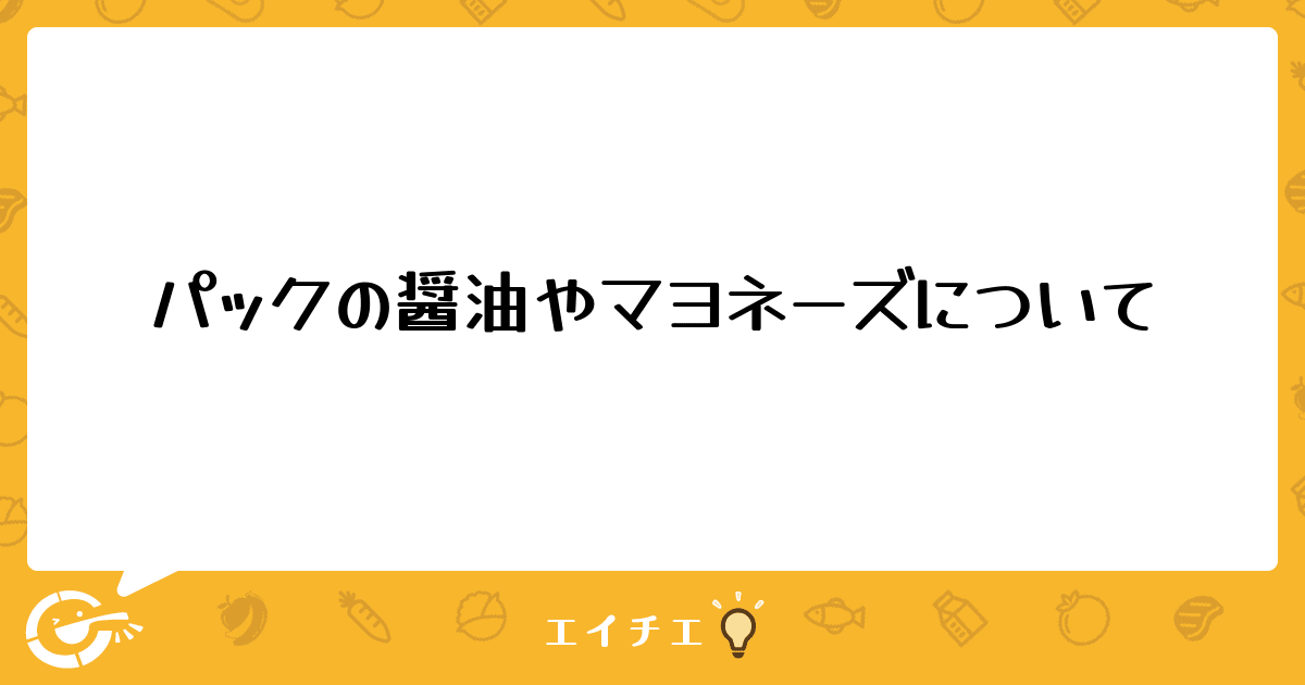 前の職場ではパックの醤油、ドレッシング、マヨネーズなどは消毒して配膳してました。現在の病院では消毒は一切していません。毎日のように醤油のパックが大皿のボイルキャベツのほとり(食品と接触してます)に付けて出してます。皆さんの意見をお聞かせくださいm(--)m