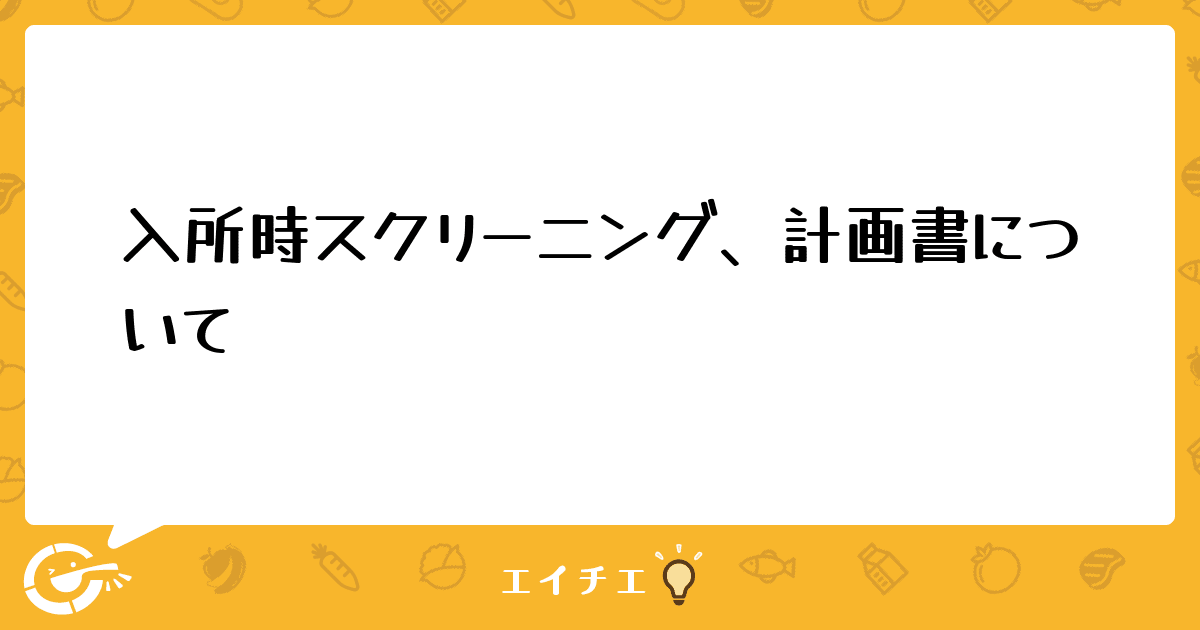 私の施設では、入所前に事前情報でスクリーニング、カンファレンス、計画書作成して当日にご家族にサインを貰い、1ヶ月後に再度スクリーニングと計画の見直しを行っています。