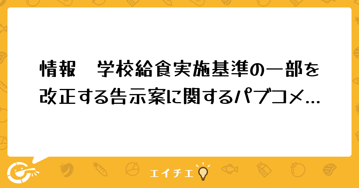 定めようとする命令などの題名 学校給食実施基準、夜間学校給食実施基準及び特別支援学校の幼稚部及び高等部における学校給食実施基準の一部を改正する告示案
