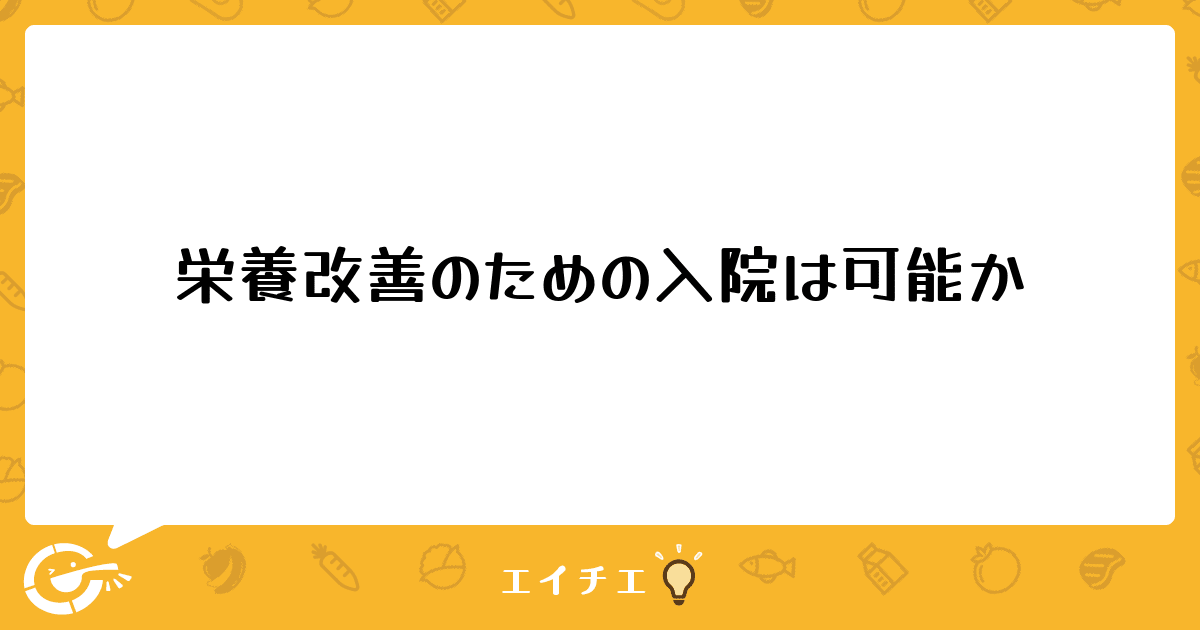 タイトルの通り栄養改善のための入院は可能か、