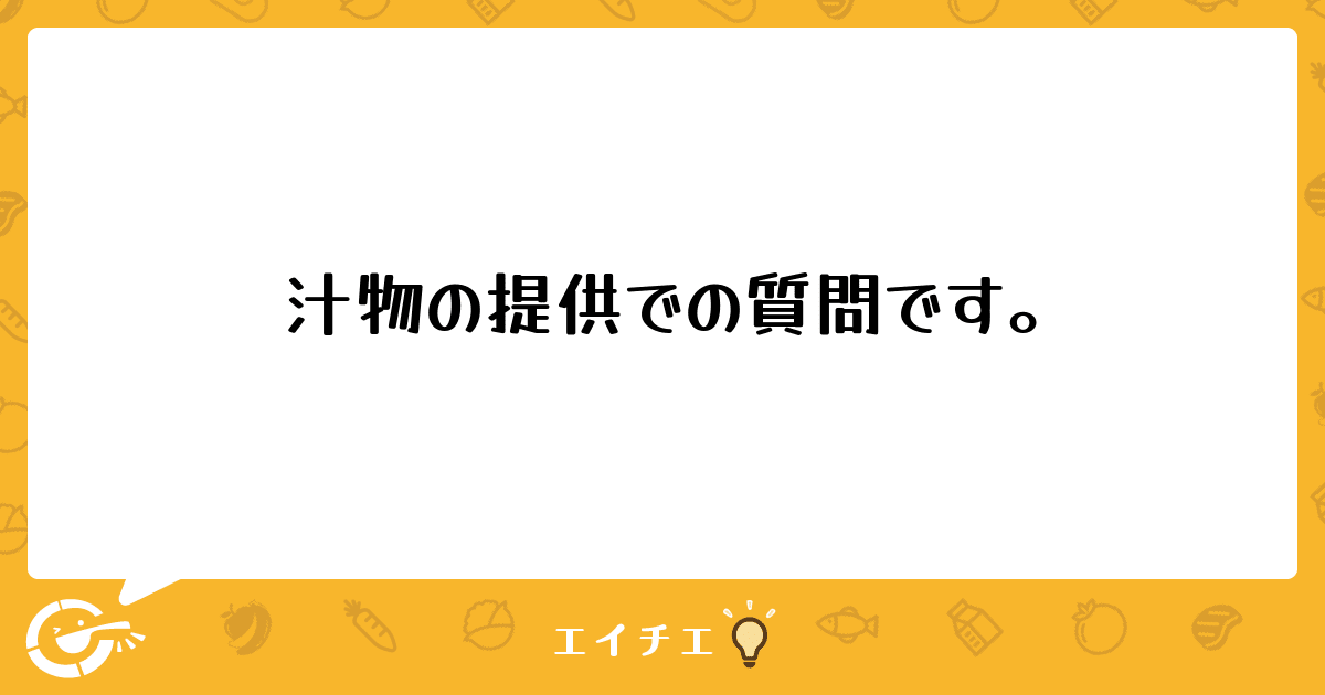 透析の方の汁物部分は大体別メニューへの代替になっていますが、献立の内容によっては「汁半量」提供をすることがありました。その場合は「減塩の汁の汁半量」だったため、今後減塩の方の汁を「汁半量」にした場合の透析の方への汁物利用部分をどのようにするかなあと思っております。