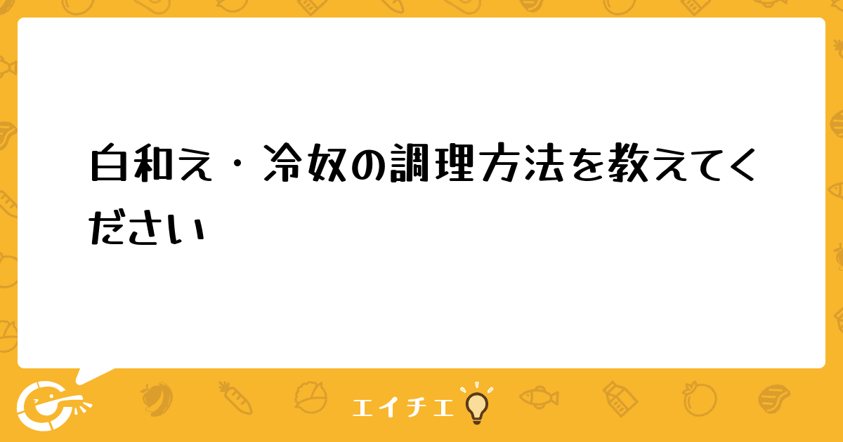 特養の施設側に勤めている管理栄養士です。大量調理マニュアルに基づいて考えた場合 白和え・冷奴はどのように調理・提供すればいいのか混乱してしまったので教えてください。