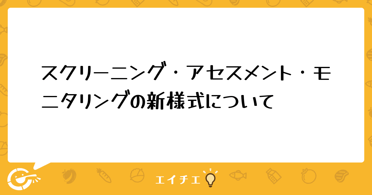 今までスクリーニング・アセスメント・モニタリングが別々の様式(アセスメントとモニタリングは同じ)で作成していました。